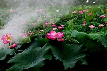 “小荷才露尖尖角,早有蜻蜓立上頭”,每到夏季便是荷花盛開的時節(jié),素有“凌波仙子”美譽(yù)的荷花相繼綻放。近日,四川廣漢荷花開,白霧繚繞似仙境,碧綠的荷葉在微風(fēng)中層層起伏,一朵朵粉白的荷花掩映其中,時而嬌羞頷首,時而亭亭玉立,千姿百態(tài)、楚楚動人,猶如一幅夏日荷塘水墨畫,真可謂“接天蓮葉無窮碧,映日荷花別樣紅”。