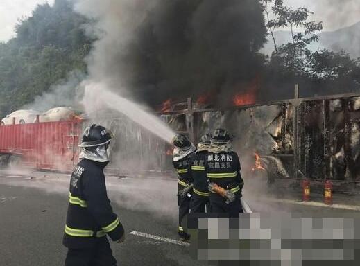 昨日上午,一輛重慶籍滿載12輛沃爾沃、大眾牌商品車的半掛貨車在滬渝高速長陽縣高家堰出口(重慶往宜昌方向)附近發(fā)生起火,長陽縣消防中隊調(diào)集20余名官兵到場及時撲滅大火,成功保住4輛商品車,其余被燒毀。